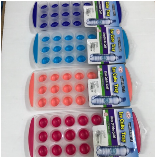 ถาดทำน้ำแข็งใส่ตู้เย็น ตรงช่องใส่น้ำแข็งทำจากซิลิโคนนิ่มๆ ทำให้สามารถแกะน้ำแข็งออกได้ง่าย คุณภาพดี แข็งแรง ทนทาน มีหลายสี สีแดง สีฟ้า สีเขียว สีม่วง น้ำเงิน แม่ค้าเลือกสีให้เองนะคะ ขนาด 11.5x28 cm ขนาดช่องน้ำแข็ง เส้นผ่าศูนย์กลาง 2.7 cm. สูง 2.5 cm