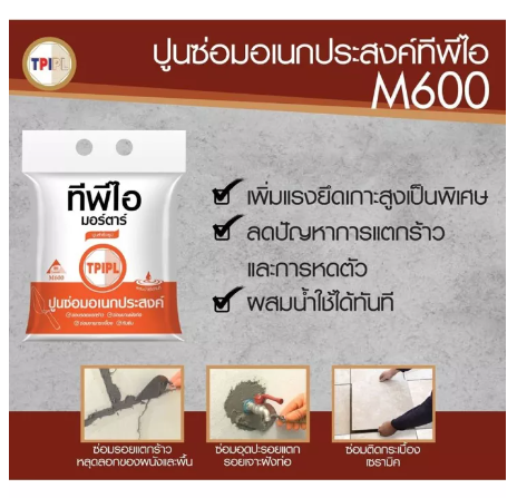 - ปูนซ่อมอเนกประสงค์ 1 ถุง(2 กก.) ใช้น้ำประมาณ 35 – 0.4 ลิตร