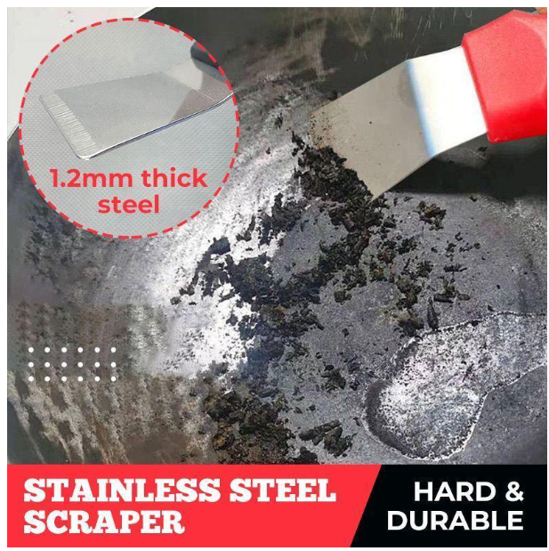 ► มีดโกนสเตนเลสสตีลพาทูล่าแข็งพอที่จะขจัดสิ่งสกปรกที่ฝังแน่นทุกชนิด