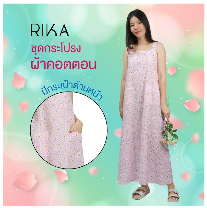 RIKA ชุดนอนวัยใส ผ้าคอตตอน 100% พิมพ์ลาย น่ารัก เซตชุดนอน เดรสกระโปรงยาว FV3036