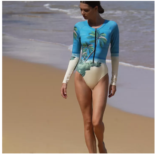 S32 Hawaiian Bodysuit ชุดว่ายน้ำบอดี้สูทแขนยาว มีฟองน้ำในตัว ผ้ากัน UV UPF 50+