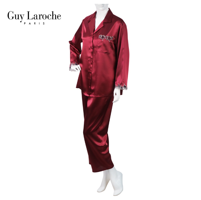 Guy Laroche ชุดนอนผ้าซาติน เสื้อแขนยาว ปกฮาวาย ผ่าหน้าตลอด กางเกงขายาวเอวยางยืด แต่งด้วยลูกไม้เนื้อนุ่ม รุ่น GN1B31