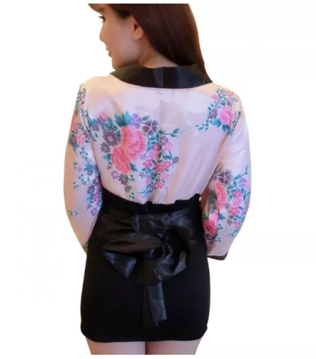 ชุดกิโมโนสีชมพู แขนยาวเย็บต่อกระโปรงทรงเอ ผ้ายืด มาพร้อมจีสตริง/ ที่คาดเอว ดูให้เป็นสาวญี่ปุ่น น่ารัก - รอบอก 32-38 นิ้ว เอวไม่เกิน32 นิ้ว สะโพกไม่เกิน38 นิว้ -ความยาวชุด27 นิ้ว แขนยาว17 นิ้ว ผ้าซาตินลื่น เนื้อดี