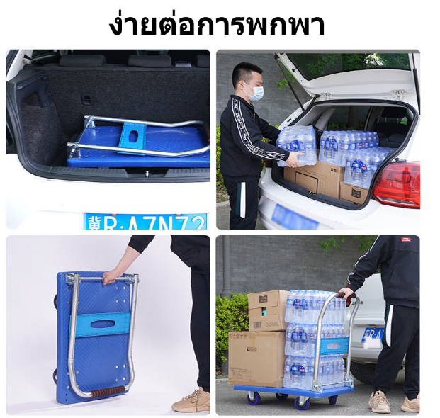 รถเข็นของ 4 ล้อ พับได้ พื้นเหล็ก รับน้ำหนัก 200 catties ขอบยางกันกระแทกรอบคัน หมุน 360 องศา (ฟรีประแจไขน็อต) รถเข็น รถเข็นพับได้ รถเข็นของพับได้ รถเข็นของหนัก Foldable Hand Truck Trolley Cart Non-Slip with Rubber Bumper