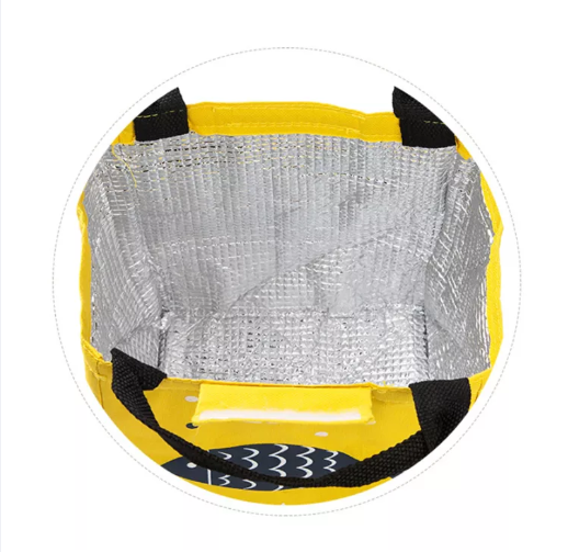 -ด้านนอกผลิตจากผ้า ด้านในวัสดุฟอยล์ที่ใช้เก็บอุณหภูมิร้อน-เย็นได้ในระยะหนึ่งค่ะ