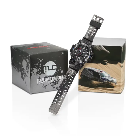 Bold, fearless, and ready for anything! A very special collaboration between G-SHOCK and the Toyota Auto Body Team Land Cruiser inspired by this veteran of the toughest race in the world, the Dakar Rally. Built to withstand all the mud and dust your adventures can bring, the G-SHOCK MUDMASTER is the ideal canvas for a collaboration with a car this tough. Add in forged carbon bezel components and a carbon core guard structure for a smaller, lighter watch, and you’re ready to take on the harshest of terrain. Designed to evoke the Land Cruiser after an intense day speeding across the desert, the band features a mud and sand splatter pattern. Laser engraving on the black ion-plated stainless steel bezel and buckle carry the motif even further. Accents like the blue, white, and red team colors and the logo on the band and case back pay tribute to the toughness of this machine, always ready to take on the most challenging of environments. Team Land Cruiser, Toyota Auto Body Team Land Cruiser at Toyota Auto Body Co., Ltd., a Toyota Group manufacturer of minivans, commercial vehicles, and SUVs, has participated in the Dakar Rally every year since 1995.