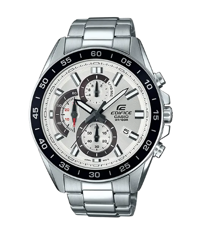 A large standard EDIFICE chronograph. Use of an extra-thick inset dial creates a powerful, dynamic design.
