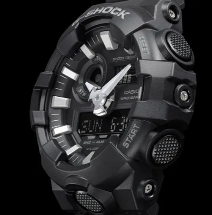 รุ่นระบบผสมอะนาล็อก-ดิจิตอลพร้อมปุ่มด้านหน้าของหน้าปัดอันเป็นเอกลักษณ์ของ G-SHOCK ที่แสดงถึงความทนทานตรงตำแหน่ง 6 นาฬิกา โดยรวมดูมีสไตล์แบบไดนามิกที่ทั้งล้ำสมัยและโฉบเฉี่ยว อ่านเวลาได้ง่ายยิ่งขึ้นด้วยเข็มใหญ่เด่นชัดและโลหะที่ดูทรงพลัง ผลิตโดยใช้เทคโนโลยีการหล่อเรซินที่เป็นกรรมสิทธิ์ของเราสำหรับเข็มชั่วโมงและนาทีแบบสามมิติ โดยออกแบบให้หน้าปัดเป็นสามมิติที่เกิดจากการทำให้วงแหวนหน้าปัดและตัวบอกเวลาเป็นสามมิติ ทำให้ดูกลมกลืนเหมือนกันกับเข็มนาฬิกาที่โดดเด่น แสดงออกถึงจิตวิญญาณที่แข็งแกร่งด้วยสีแดงที่สื่อถึงแนวคิดของแบรนด์ ไฟเรืองแสงโดดเด่นและฟังก์ชันการเลื่อนเข็มนาฬิกาดำเนินการผ่านปุ่มด้านหน้าที่มอบการใช้งานขั้นสูง รุ่น G-SHOCK ที่ผสานความแข็งแรงและดีไซน์ทนทานที่เป็นกรรมสิทธิ์ของเรา พร้อมหน้าปัดแบบสามมิติ