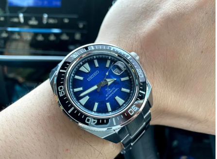 ตัวเรือนโลหะสแตนเลสขนาดตัวเรือนความหนา:12.8mm เส้นผ่าศูนย์กลาง:43.8mm ความยาว:48.7mmวัสดุกระจกแซฟไฟร์การเคลือบกระจกการเคลือบแบบป้องกันแสงสะท้อนที่พื้นผิวด้านในสารเคลือบแสงสะท้อนเข็มนาฬิกาและเข็มชี้ และขอบหน้าปัดตะขอตัวปรับขยายสำหรับนักดำน้ำแบบมีปุ่มกดความยาวสายนาฬิกา22